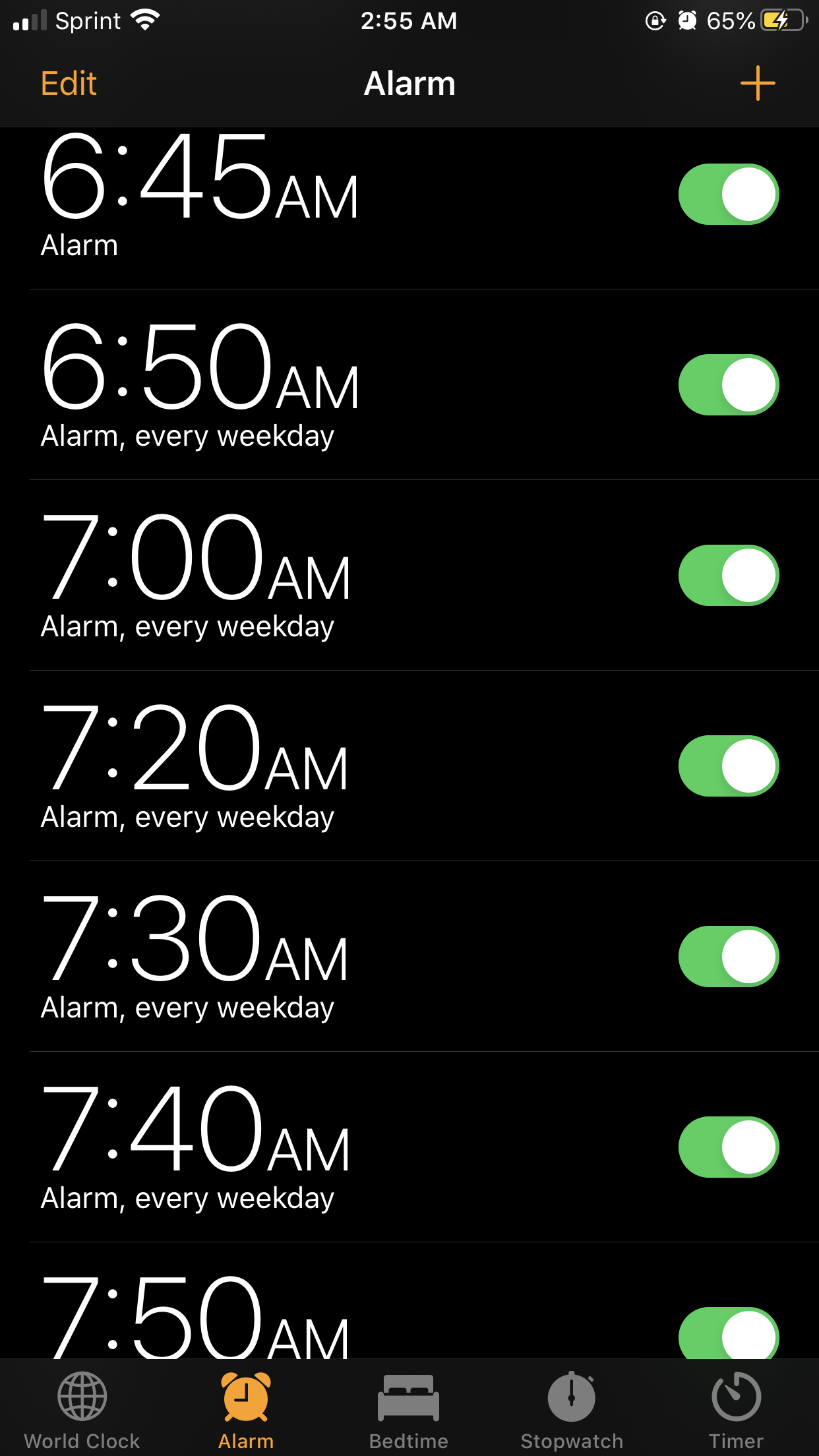 You can also edit existing alarm schedules to disable vibration individually. As noted before the iPhone has a very strong vibration motor. If your alarm volume is too low or too loud press the volume button up or down to adjust it.